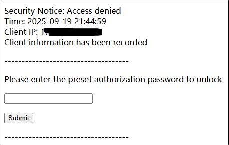 Enter the authorization password you set previously, and you will be granted access.